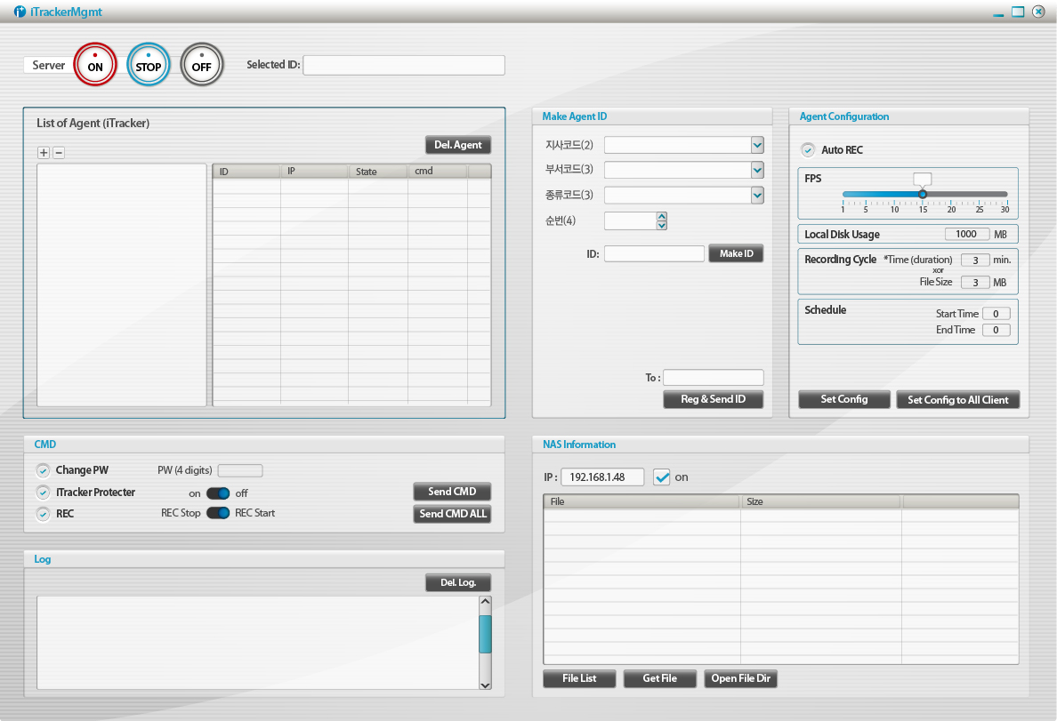 iTracker 2.0 의 화면녹화 및 감사 시스템은 Agent, Manager, NAS 모듈로 구성되며, 윈도우 계열 OS의 화면을 상시 녹화하는 제품입니다. 관리자의 설정에 따라 녹화시간, 길이, 해상도, 프레임 수 등 변경 가능하며 공유 스토리지를 통해 NAS 저장 및 검색이 가능한 제품 입니다.[제품특징]